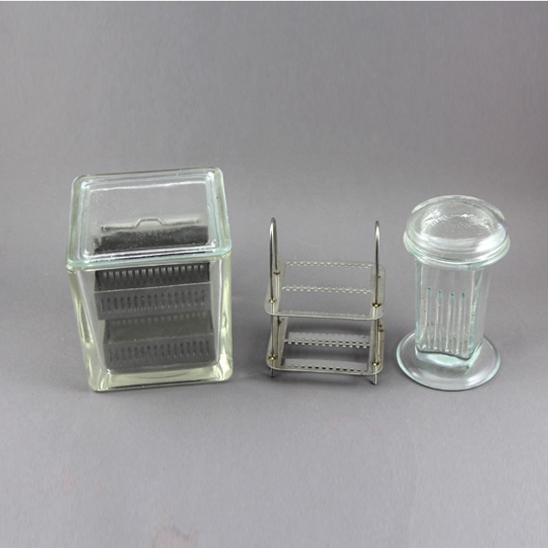 用于医疗卫生、医学院、防疫站、大专院校、科研单位,在研究细菌、细胞时,对涂有痰液、勃液、分泌液、浓汁等细菌标本制片或动植物标本制成的载玻片或盖玻片进行染色时作贮存染色液体,浸胞载玻片或盖玻片的染色器具。
